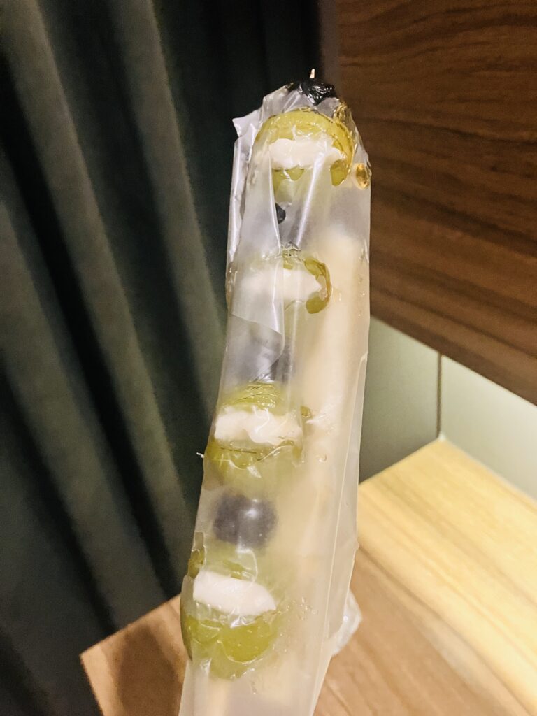 実は、上海に行くのは約6年ぶりでした。乗り継ぎまで時間に余裕があったので、神山さんと一緒に市内へ出て、季節の蟹みそ混ぜ麺と蟹みそ小籠包、そして最近中国で流行っている奶皮子のフルーツ飴を食べました。久しぶりの上海で、ゆっくり食事できてよかったです。とてもおいしかったです。