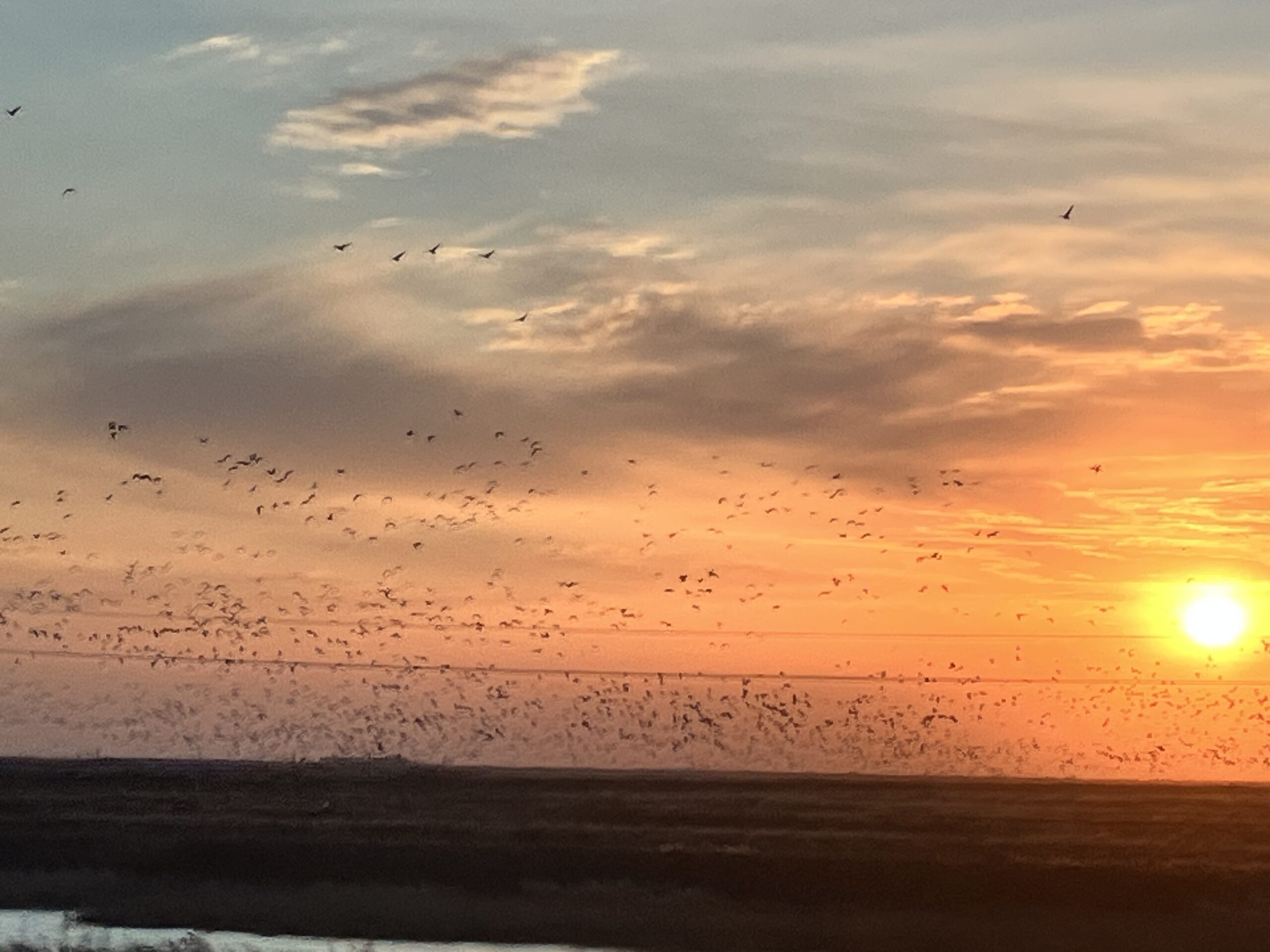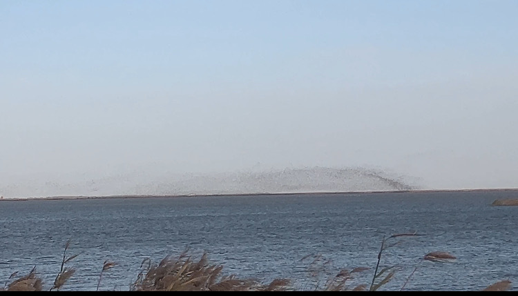 最後に黄河の河口を見学し、ホテルへ戻る途中、農地の上を低く飛ぶガンの群れも確認できました。