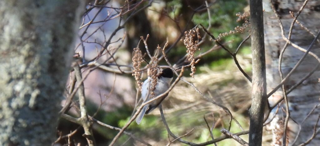 調査後に、コガラがリョウブの実を食べているのを観察しました。