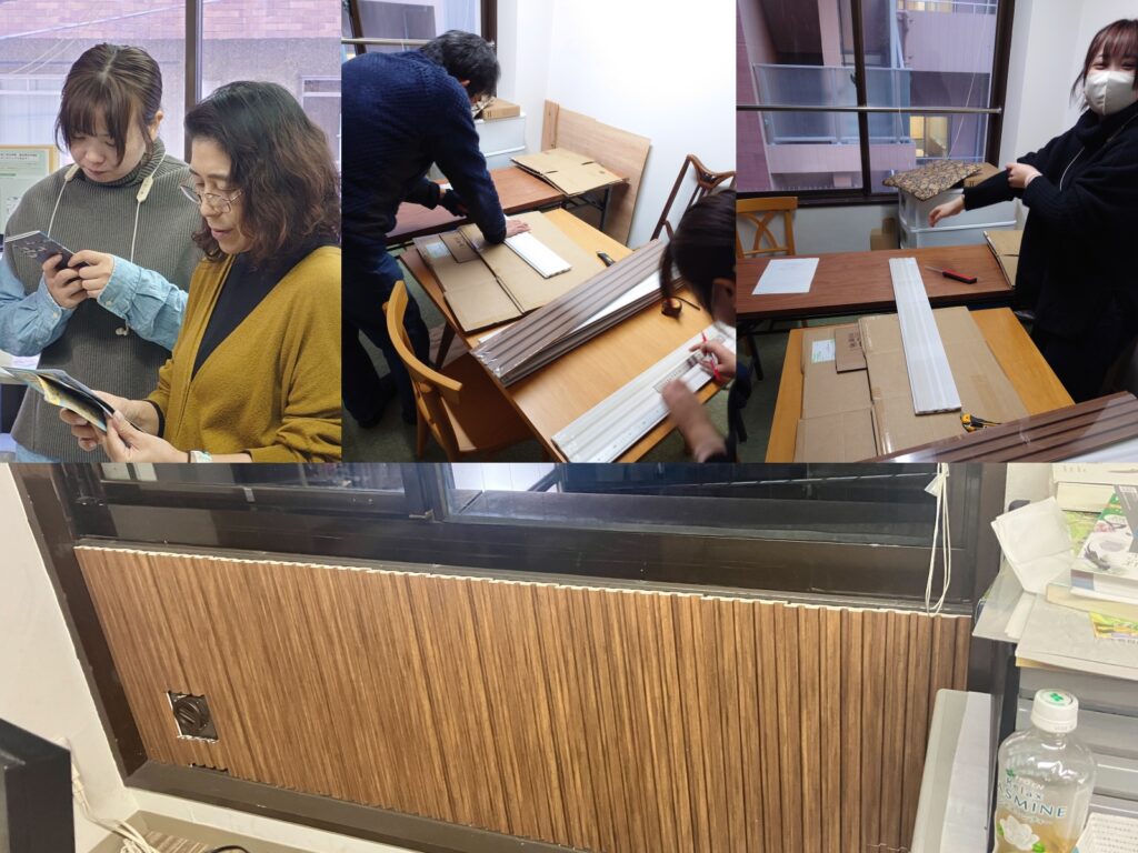 ボードをカットするのは思ったよりも力仕事でしたが、見た目もおしゃれに仕上がって、スタッフ一同ちょっとテンションの上がる年末でした(笑)。活躍してくれた女子2人組はいつも仲良し。和気あいあいと明るい雰囲気を作ってくれています。