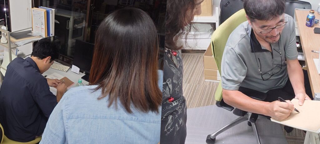 そうそう、植村と守屋が共著で出した「野鳥の食事事典」山と渓谷社が届いた際は、2人して職場内でサインをもらっていました。微笑ましくて、ちょっと写真を撮っていました。出来上がった辞典は、piro piro piccoloさんのイラストがやわらかく、鳥が何を食べているのかの知的な楽しみを親しみやすく伝えてくれている良い本になっています。(詳しくは山と渓谷社のサイトにて)