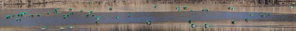 3枚目は大群。2025年11月10日に千葉県の印旛沼で撮影したトモエガモです。体が重なっているのでYolo付属の鳥認識モデルではうまく数えられませんでしたが、Yoloの利用を支援してくれている会員の北島直紀さんがトモエガモの顔を認識する学習モデルを作ってくれました。それを使ってパノラマ写真全体を認識させたところ、この日のトモエガモの総数は約13,000羽とカウントできました。